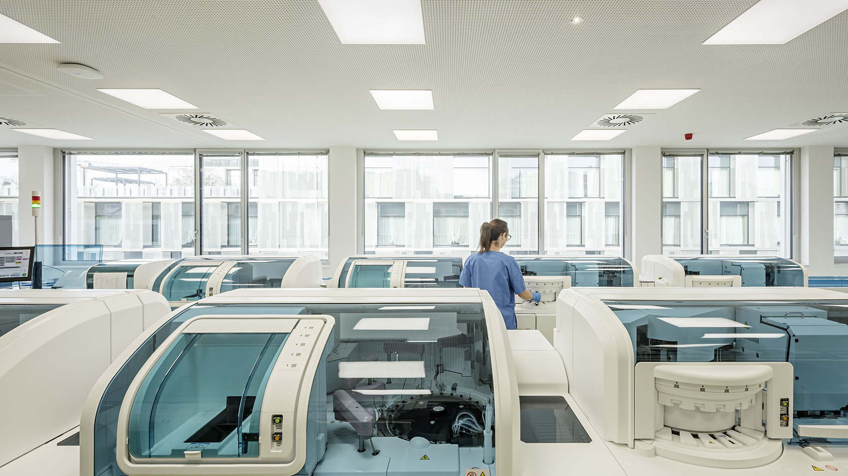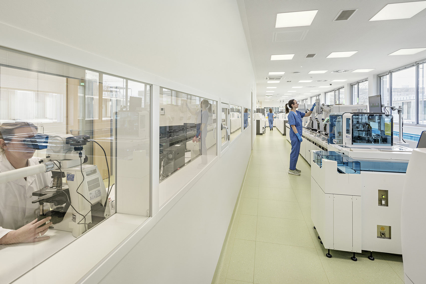 F+P war bei diesem Projekt federführend beteiligt, die Planung erfolgte durch AHA – Austrian Healthcare Architects (SWAP Architektur sowie AC Architects Collective). Im Fokus stand die Verbindung von technischer Exzellenz mit einer klar strukturierten, funktional durchdachten Raumorganisation. Das Herzstück bildet das „Core-Labor“ der automatisierten Laborstraße, ergänzt durch optimal angeordnete Laborbereiche und kurze, effiziente Wegeführungen.