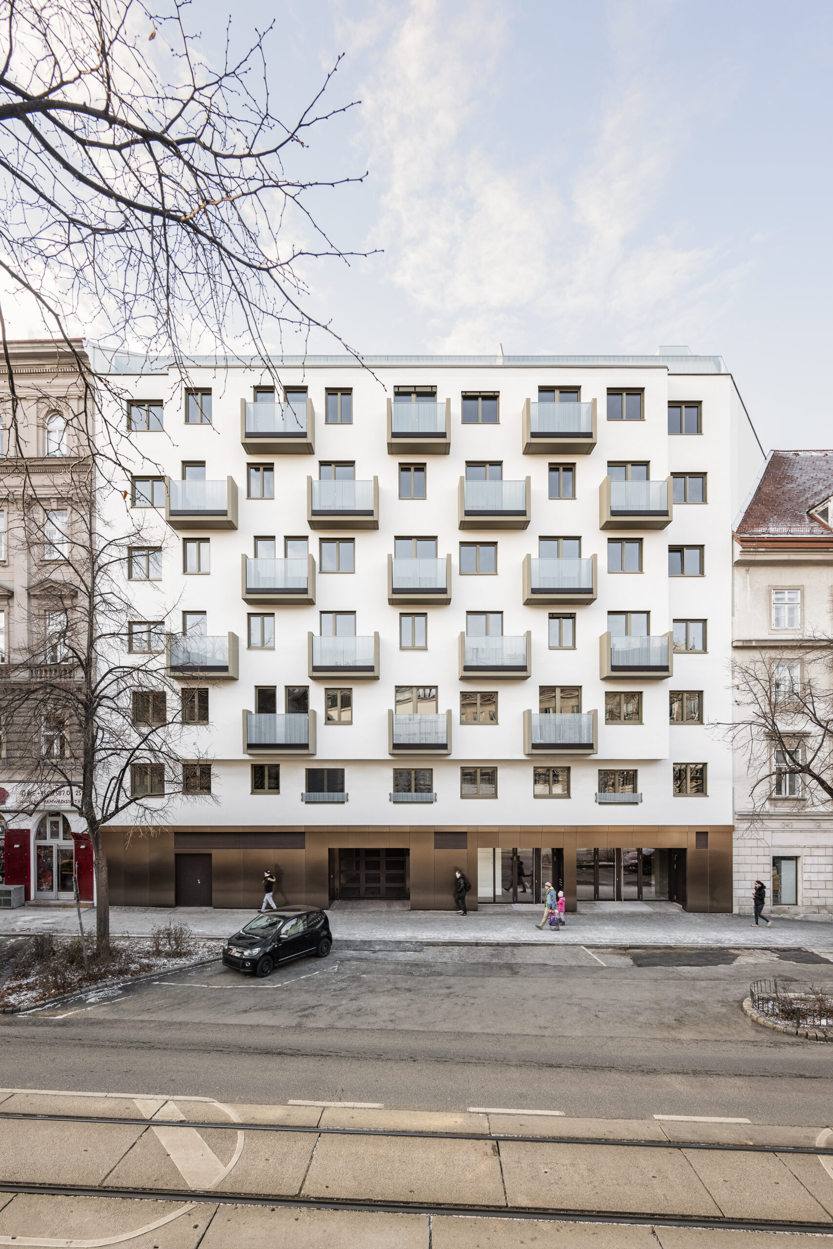 Der Altbestand des bestehenden Bürogebäudes aus den Siebziger-Jahren wird abgebrochen. Über der Ordination im Erdgeschoss wird ein zeitgemäßer Wohnbau mit 39 Wohnungen und einer Wohnnutzfläche von rund 2.600 m2, verteilt auf 8 Obergeschosse, errichtet.